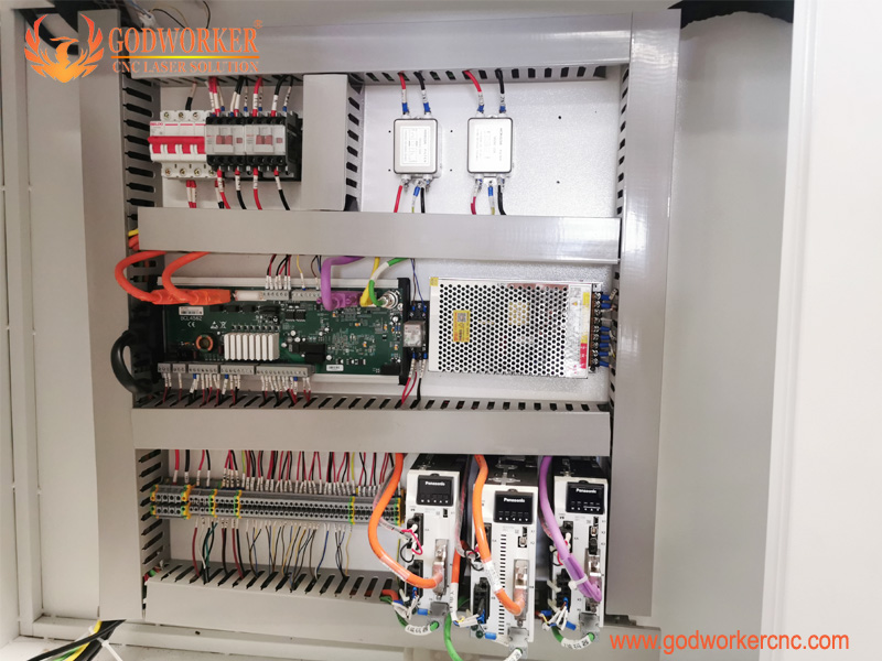 6. Control cabinet: DELIXI electric parts and Panasonic drivers. Cypcut control board.